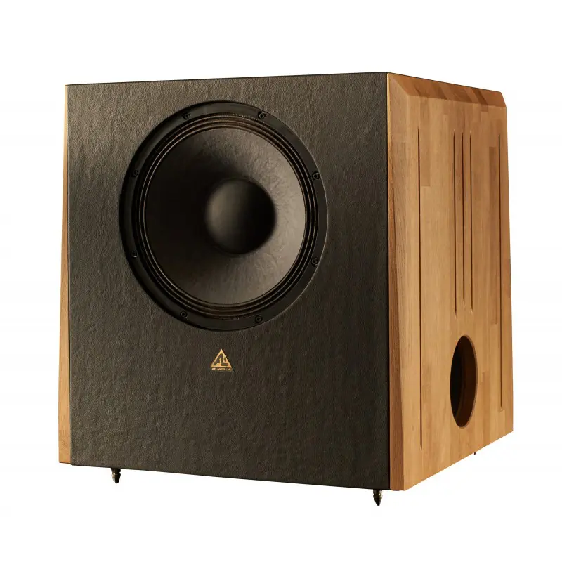Il utilise deux haut-parleurs de 31 cm et 26 cm de diamètre chargé par un Bass reflex pour une réponse franche et propre jusqu’à 25Hz, sans utiliser de processing. Il demeure aussi rapide que les AT 21.