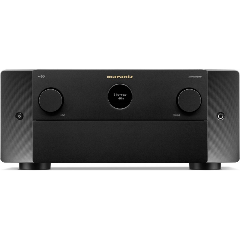 Le pré-ampli home-cinéma Marantz AV 10 est taillé pour les installations les plus complètes grâce à ses 15.4 canaux de pré-amplification et à la prise en charge des formats audio immersifs Dolby Atmos, DTS:X et Aura-3D. Ce pré-ampli Marantz dernière génération sublime toutes vos sources vidéo grâce à ses sept entrées HDMI 2.1 compatibles UHD 8K à 60 i/s et UHD 4K à 120 i/s. Il est compatible avec les formats HDR Dolby Vision, HDR10+ et HLG, ainsi qu’avec les technologies VRR, QFT et ALLM pour optimiser les jeux vidéo. Le streaming est également au coeur de ce pré-ampli Marantz AV 10 grâce à sa compatibilité AirPlay 2, Bluetooth, l’accès aux services de musique en ligne, aux titres partagés en DLNA et au multiroom Heos.