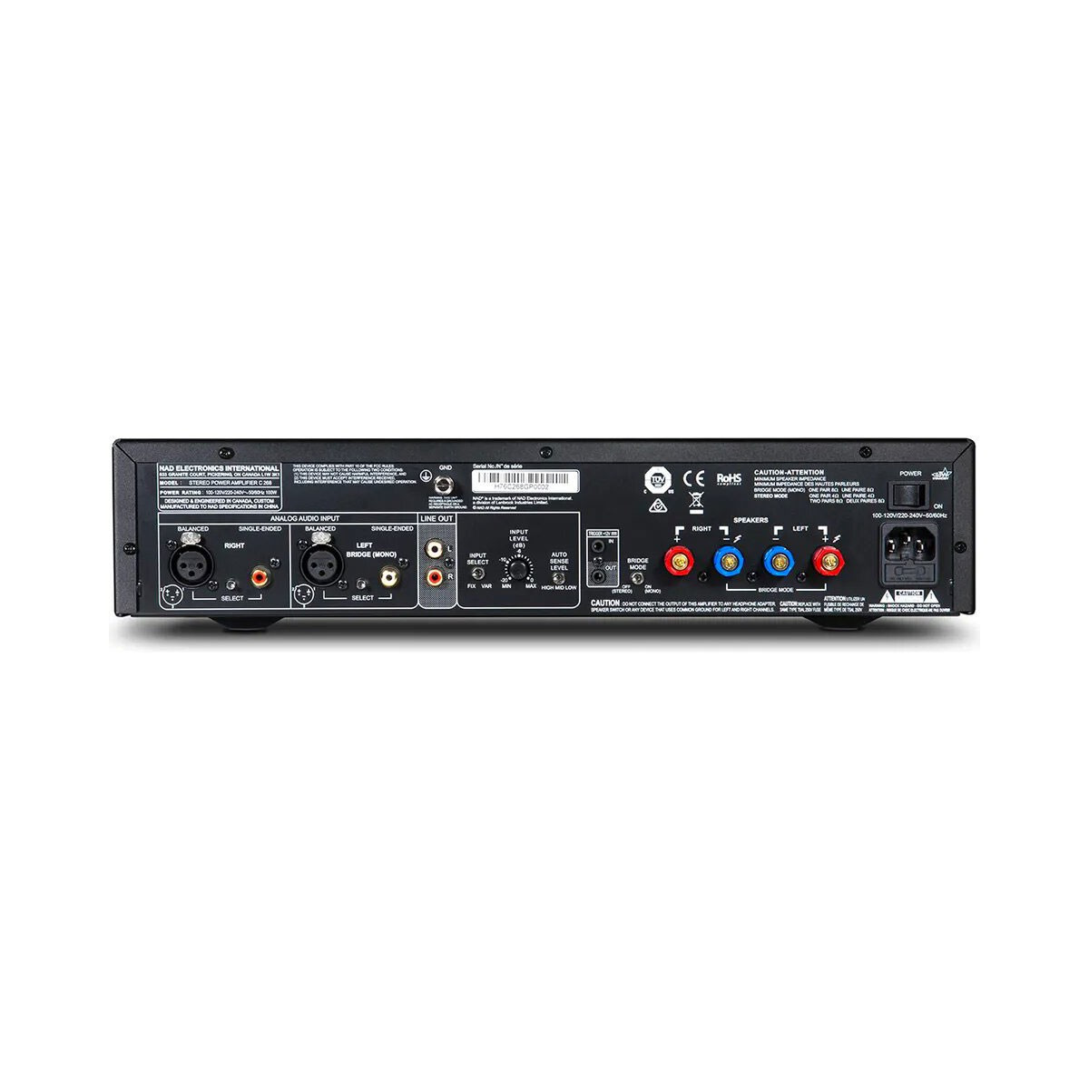 Cette puissance très élevée en fait un candidat de choix pour officier en tant qu’ampli de puissance associé à un ampli home-cinéma à sorties pre-out, ou bien de tout intégré hi-fi disposant d’une sortie à niveau variable. De plus, le NAD C268 intègre une sortie ligne pour chaîner plusieurs amplis de puissance. Enfin, un potentiomètre d’entrée ligne permet de chuter le signal entrant de 1 dB à 20 dB.