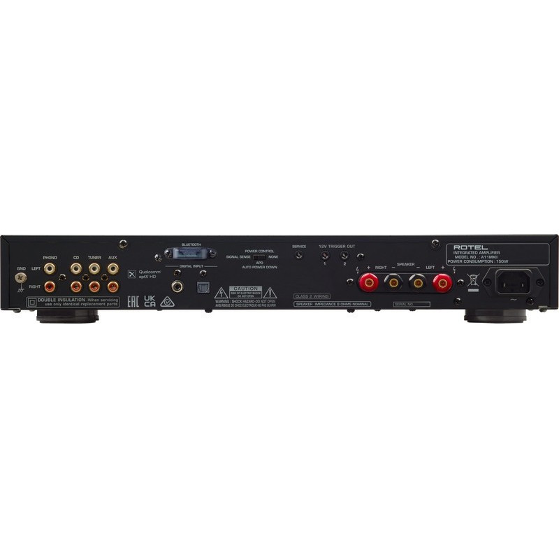 Des sources analogiques et numériques sont proposées, avec trois entrées RCA de niveau de sortie de ligne, des entrées numériques coaxiales et optiques, un étage phono à aimant mobile et l’aptX™ HD Bluetooth. Une prise casque 1/8 po. avec circuit d’amplification de casque dédié est disponible sur le panneau avant pour les séances d’écoute en privé.
