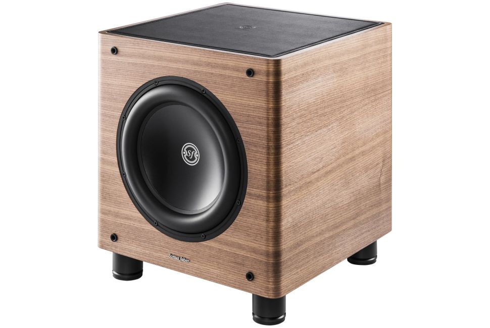 Le caisson de basses Sonus Faber Gravis II adopte un coffret renforcé anti-vibration qui accueille un haut-parleur à long débattement de 260 mm de diamètre chargé par un radiateur passif de même diamètre avec le même cône et la même suspension. Orienté vers le bas, le haut-parleur est alimenté par un module d’amplification en classe AB d’une puissance de 350 watts RMS. Il est proposé en quatre finitions différentes qui ont en commun quatre pieds noirs et la partie supérieure recouverte de cuir noir, parfaitement assortie aux enceintes de la gamme Sonus Faber Sonetto.
